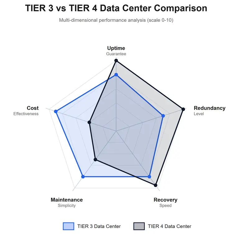 A Tier 3 data center meets the operational needs of the vast majority of medium and large enterprises. It provides sufficient protection at a fraction of the cost of premium infrastructure. Investment in Tier 4 only makes sense in cases where every second of downtime generates measurable financial losses in the hundreds of thousands.
